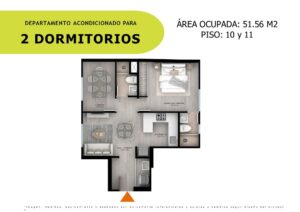 Amarela constará de 11 pisos con un total de 56 departamentos de 1, 2 y 3 dormitorios, y 5 áreas comunes, entre ellas: Zona de parrillas, terraza, coworking, lobby, estacionamientos de bicicletas y lavandería.