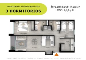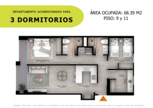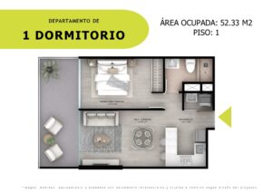 Amarela constará de 11 pisos con un total de 56 departamentos de 1, 2 y 3 dormitorios, y 5 áreas comunes, entre ellas: Zona de parrillas, terraza, coworking, lobby, estacionamientos de bicicletas y lavandería.